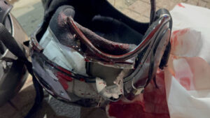 ในที่เกิดเหตุยังพบ รถจักรยานยนต์ ยี่ห้อ ยามาฮ่า ฟีลาโน่ สีดำ ทะเบียน 9 ขพ 7440 กรุงเทพมหานคร ของผู้ตายพบว่าเสียหลักขูดติดไปกับขอบฟุตบาทห่างจากที่เกิดเหตุประมาณ 100 เมตร โดยพบสภาพที่ไฟฟ้าและเรือนไมค์พังเสียหายจากการชนเสาไฟฟ้า เจ้าหน้าที่จึงบันทึกภาพทำแผนที่ที่เกิดเหตุก่อนจะเก็บรถจักรยานยนต์ไปตรวจสอบอีกครั้งที่ สภ.บางเสาธง