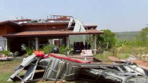 มุกดาหาร – พายุฤดูร้อนพัดถล่ม บ้านเรือนราษฎรพังเสียหาย กว่า 20 หลังคาเรือน