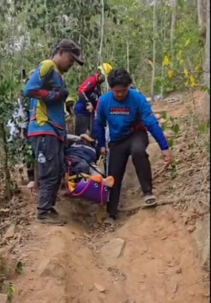 กู้ภัยฯ เดินเท้าฝ่าเขา 4 กม. หลาย ชม. ช่วยต่างชาติขี่วิบาก พลาดท่าล้มขาหักกลางป่า