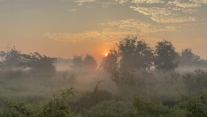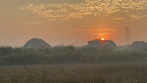 อ่างทอง – ความสวยงามของแสงยามเช้าส่งท้ายปีเก่า2568 ที่กลางทุ่งนา ตำบลย่านซื่อ มีหมอกลงปกคลุมขาวโผลนไปทั่ว เป็นความสวยงามยามเช้า ท่ามกลางพระอาทิตย์ที่กำลังส่องแสง