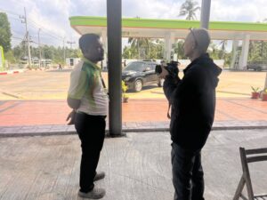 ขณะที่ผู้สื่อข่าวกำลังทำข่าวอยู่ภายในปั๊มน้ำมันก็มีรถของประชาชนทราบว่าเป็นพนักงานขายยาปุ๋ยทุเรียน เกิดน้ำมันหมดขณะกำลังแวะเข้ามาเติมในปั๊มน้ำมันพอดี โดยบอกว่าตลอดเส้นทางหาเติมน้ำมันไม่ได้เลยหมดทุกปั๊ม จนมาถึงปั๊มปตท.ริมถนนสายเอเชีย 41 นำมันหมดขณะจอดรอคิวยาวก่อนเข้าปั๊ม โชคดีที่ทางปั๊มมีน้ำมันให้เติมเดินทางต่อไปหาลูกค้าสวนทุเรียนได้ แต่เป็นคันท้ายๆแล้วก่อนที่ทางปั๊มประกาศติดป้ายประกาศน้ำมันดีเซลล์หมด อยู่ระหว่างการขนส่ง