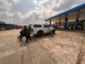 23-03-69ชุมพร-ชุมพรยังวิกฤตน้ำมันขาดแคลนปชช.เข็นรถเข้าปั๊มบางแห่งลดจำนวนพนักงาน-เปิดเฉพาะช่วงกลางวัน