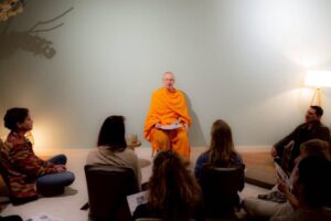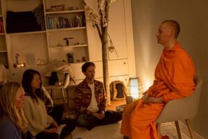 การจัดกิจกรรมครั้งนี้เกิดขึ้นโดยลูกศิษย์สองท่าน ซึ่งเคยร่วมกิจกรรมนั่งสมาธิเมื่อ 15 ปีก่อนกับพระซันเดอร์ เขมธมฺโม จึงได้ชักชวนเพื่อนและผู้ที่สนใจมาร่วมกิจกรรมนั่งสมาธิ โดยบรรยากาศเต็มไปด้วยความตั้งใจซึ่งส่วนใหญ่เป็นชาวยุโรปที่ให้ความสนใจในการพัฒนาตนเองจากภายใน ทั้งนี้ผู้เข้าร่วมได้เรียนรู้การทำสมาธิในรูปแบบที่เน้น “ความนิ่งและความสบาย” เริ่มจากการนั่งในท่าที่ผ่อนคลาย วางใจไว้ที่ศูนย์กลางกาย พร้อมทำใจให้สงบ ไม่บังคับความคิด หากมีความคิดฟุ้งซ่านก็เพียงรับรู้แล้วค่อย ๆ นำใจกลับมาโดยไม่หงุดหงิด สิ่งสำคัญคือการปล่อยวาง ไม่คาดหวังผลลัพธ์ และเปิดใจรับประสบการณ์ภายในอย่างเป็นธรรมชาติ หัวใจของการปฏิบัติคือ การหยุดนิ่งของใจ ซึ่งจะค่อย ๆ นำไปสู่ความสงบ ความผ่อนคลาย และความสุขจากภายในอย่างยั่งยืน