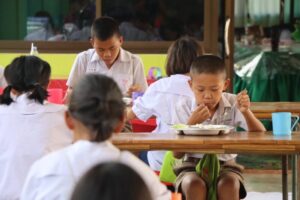 เมตตาธรรมนำสุข ครูบาโชคชัยจัดเลี้ยงอาหารนักเรียนส่งท้ายเทอม