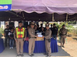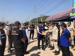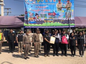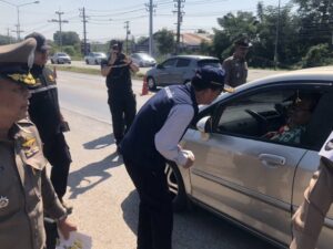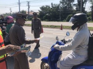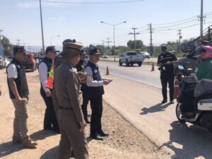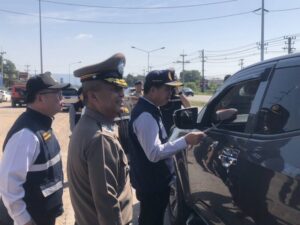 ร่วมตรวจจุดบริการและให้กำลังใจตำรวจและหน่วยงานที่เกี่ยวข้องที่มาร่วมปฏิบัติหน้าที่ โดยเชิญชวนประชาชนที่ใช้รถใช้ถนนให้สวมหมวกนิรภัย และรณรงค์ให้ประชาชนเมาไม่ขับ พร้อมทั้งแจกจ่ายหมวกนิรภัยให้กับประชาชน
