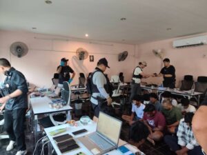 จากการเข้าตรวจสอบพบว่า วิลล่าดังกล่าวมีการรักษาความปลอดภัยแน่นหนา โดยเฉพาะบริเวณโรงจอดรถถูกดัดแปลงเป็นห้องกระจกลักษณะออฟฟิศ ปิดบังสายตาจากภายนอกอย่างมิดชิด เมื่อเจ้าหน้าที่บุกเข้ามาภายใน พบชาวอินเดีย 25 ราย กำลังปฏิบัติหน้าที่แบ่งเป็นฝ่ายการตลาด บัญชี และแอดมินดูแลลูกค้า