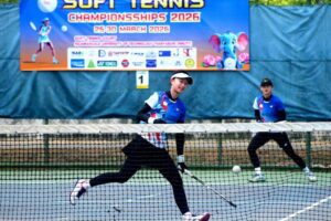 นักหวดชายคู่+หญิงคู่ซอฟท์เทนนิสมหาลัยจากไชนีสไทเปสุดแกร่งทะลุเข้าชิงชนะเลิศกันเองทั้งสองประเภท ชายคู่ เชน ยูฮุน และ เชน โปยี โชว์ฟอร์มร้อนแรงพอกับสภาพอากาศวันนี้เอาชนะชายคู่เพื่อนร่วมชาติ ชาง ยู-ซุง ที่จับคู่กับ อู๋ ซู-ฮุง ไปสุดเดือด 5 : 2 ส่วนประเภทหญิงคู่ ซู ยาน-เซ็น จับคู่กับ เจียง มิน-ยู หวดเอาชนะคู่ของ ซู เจียว- ยิง และ หาน ชิ-หยวน 5 : 3 คว้าแชมป์หญิงคู่การแข่งขันซอฟท์เทนนิสนานาชาติ “The 2nd Asian University Soft Tennis Championships 2026” ที่ สนามเทนนิสมหาวิทยาลัยเทคโนโลยีราชมงคลธัญบุรี คลองหก ปทุมธานี