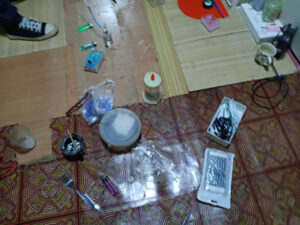 นี่เป็นจังหวะที่นาย ชานนท์ หรือ นาย เต้ อายุ 42 ปี นั่งอยู่กลางห้อง พร้อมเพื่อนรุ่นใหญ่ หลังจากที่ถูกตำรวจฝ่ายสืบสวนของสภ.บางพลี บุกเข้าตรวจค้นภายในห้องพัก โดยเจ้าตัว ถึงกับร่ายมนต์คาถา สวดภาวนาเสียงดัง เพื่อขอให้สิ่งศักดิ์สิทธิ์ช่วยบังตาให้กับตนเองไม่ให้ทางด้านเจ้าหน้าที่ตำรวจค้นเจอยาบ้าที่ตนเองซุกซ่อนไว้ในห้องพัก แต่สุดท้ายไม่รอดสายตาของตำรวจสืบสวนของสภ.บางพลี โดยตำรวจไปพบของกลาง เป็น ยา ไอซ์ จำนวน 5 ถุง น้ำหนักรวม 6.04 กรัม. ยาบ้า 26 เม็ด จึงคุมตัว นายชานนท์ พร้อมกับเพื่อนรุ่นใหญ่ ก็คือ นาย ธีรพงศ์ หรือโก๊ะ อายุ 55 ปี พร้อมด้วยของกลาง ทั้งหมดส่งพนักงานสอบสวนของสภ.บางพลี ดำเนินคดีตามกฎหมาย ในข้อหา มียาเสพติดประเภท 1 ไว้ในความครอบครองเพื่อจำหน่าย โดยผิดกฎหมาย