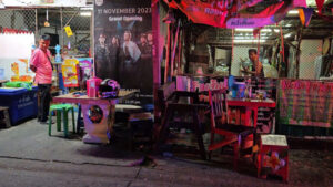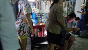 นางสาว กมลวรรณ นวลรัก อายุ 20 ปี ( ชุดนอน ) อยู่ในเหตุการณ์เล่าว่าก่อนเกิดเหตุคนก่อเหตุซึ่งอยู่ในอาการมึนเมาอย่างหนักได้มีปากเสียงทะเลาะกับผู้ชายอีกคนหนึ่ง (พี่เสื้อชมพู) มาตั้งแต่หัวค่ำแล้ว ซึ่งตอนแรกดูเหมือนคนก่อเหตุกำลังจะลุกกลับไป แต่จังหวะที่หันหลังกลับไปนั้นกลับหันไปหาเรื่อง “พ่อ” (ผู้บาดเจ็บที่คุณกมลวรรณนับถือเป็นพ่อ) ซึ่งนั่งอยู่ตรงข้ามกันแบบหันหลังชนกัน ตนหันมาอีกทีตอนกำลังอุ้มลูกอยู่ ก็เห็นเขาแทงพ่อแล้ว เลยต้องรีบวิ่งหนีออกมา ยังให้ข้อมูลอีกว่าคนก่อเหตุรายนี้มีพฤติกรรมเมาแล้วหาเรื่องไปทั่ว โดยก่อนจะลงมือแทงไม่ได้มีปัญหากับพ่อมาก่อน แต่คาดว่าน่าจะเป็นเพราะความไม่พอใจหลังจากทะเลาะกับชายเสื้อชมพูเสร็จ แล้วจึงหันมาหาพ่อแทน
