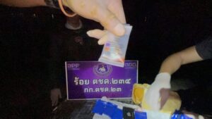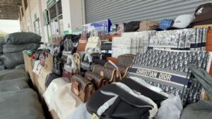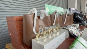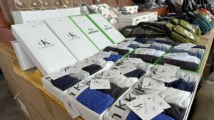 จากการตรวจรถบรรทุก พบสินค้าละเมิดเครื่องหมายการค้าหลายประเภทจำนวนมาก ประกอบด้วย กระเป๋า เสื้อผ้า น้ำหอม หมวก และกางเกง บรรจุในกระสอบสีเขียว ซุกซ่อนอยู่ภายในรถบรรทุกคันดังกล่าว