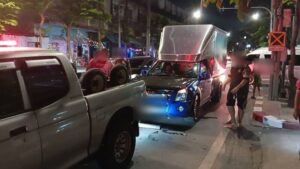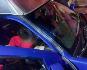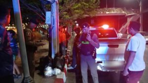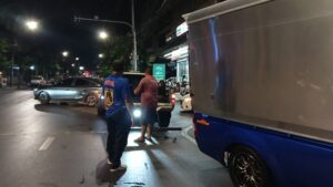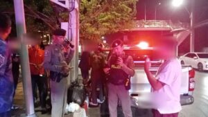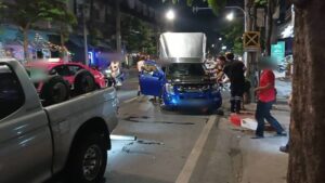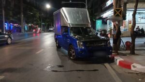 ที่เกิดเหตุพบรถกระบะตู้ทึบ ยี่ห้ออีซูซุ สีน้ำเงิน ทะเบียน 4 ฒช 3516 กรุงเทพมหานคร สภาพล้อหน้าปีนขึ้นฟุตบาท ตัวรถพุ่งชนอัดกับต้นไม้ข้างทางได้รับความเสียหายหนัก ภายในรถพบชายวัยรุ่นอายุประมาณ 20–25 ปี มีอาการตื่นตกใจ พูดจาวกวนจับใจความไม่ได้ โดยมีประชาชนและกลุ่มชายฉกรรจ์ยืนล้อมดูเหตุการณ์จำนวนมาก เจ้าหน้าที่จึงควบคุมตัวไปสอบปากคำเพิ่มเติมที่ สน.ทุ่งครุ