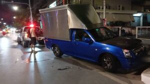 แหย่รังแตน! วัยรุ่นทรงเอฉกรถกระบะในคลังสินค้า เจอเจ้าของไล่ล่าจนเสียหลักชนต้นไม้ สุดท้ายไม่รอดถูกตำรวจรวบทันควัน ย่านทุ่งครุ