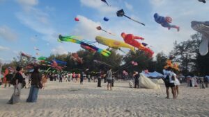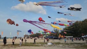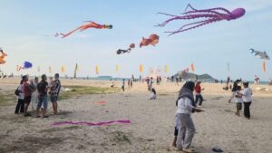 เทศกาลว่าวริมหาดสมิหลา สุดคึกคัก นักท่องเที่ยวมาเลเซียแห่ชม เด็กๆ แห่เล่นว่าวห่างจอโทรศัพท์ ขณะที่หลายคนแห่ซื้อว่าวหลากหลายชนิด