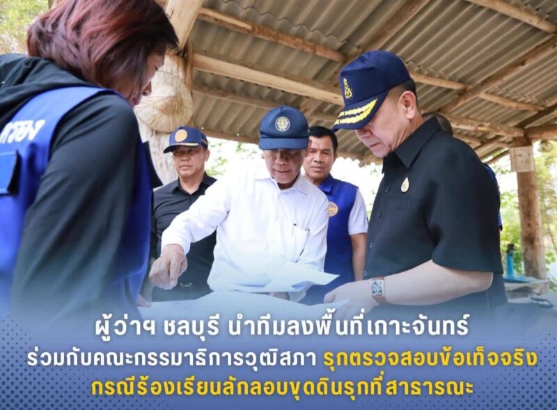 ผู้ว่าฯ ชลบุรี นำทีมลงพื้นที่เกาะจันทร์ ร่วมกับคณะกรรมาธิการวุฒิสภา รุกตรวจสอบข้อเท็จจริงกรณีร้องเรียนลักลอบขุดดินรุกที่สาธารณะ