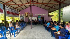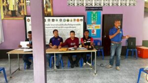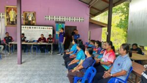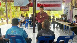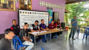 พ.ต.ท.สุรศักดิ์ พนัสนาชี รอง ผกก.ป.สภ.เมืองชุมพร ,ว่าที่ พ.ต.ท.ประคอง แก้วประสม สวป.(ชส.)ฯ,ร.ต.อ.ฐปนนท์ แดงสกล รอง สวป.ฯ , นางวันเพ็ญ เลขพลการ ผอ.รพ.สต.หาดพันไกร, นายบุญนำ จันทรประนต นายก ฯ อบต.หาดพันไกร, ส.อบต.ม.2 ต.หาดพันไกร/แพทย์ รพ.แพทย์แผนไทยประยุกต์ พร้อมด้วย ชุดปฏิบัติการตำบลยั่งยืน ,ชุด ชมส.ฯ และ สายตรวจตำบลหาดพันไกร,สายตรวจตำบลบางลึก ร่วมกับ นายศรัญญู สุดดวง ผญบ ม.1 ต.หาดพันไกร ฯ , ผช.ผญบ.ม.1, นายชานุรัตน์ ฤทธิเกษร ผญบ.ม.2 ,ผช.ผญบ.ม.2 , ประธาน ส.อสม.รพ.สต.หาดพันไกรและ อสม.ม.1,2 ต.หาดพันไกร ,ประธานคุ้มและคณะกรรมการคุ้ม ฯ ตามโครงการตำบลยั่งยืนเพื่อแก้ไขปัญหายาเสพติดตามยุทธศาสตร์ชาติ ประจำปีงบประมาณ 2569 ณ ศูนย์หมู่บ้าน ม.2 ต.หาดพันไกร อ.เมือง จ.ชุมพร