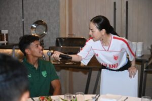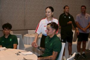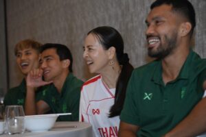 “มาดามแป้ง” นวลพรรณ ล่ำซำ นายกสมาคมกีฬาฟุตบอลฯ เดินทางมาเยี่ยมแคมป์ ทีมชาติไทย โดยร่วมรับประทานอาหารมื้อค่ำ หลังการฝึกซ้อม วันที่ 29 มีนาคม 2569 ท่ามกลางบรรยากาศที่อบอุ่น คึกคัก และ มีความเป็นน้ำหนึ่งใจเดียวกัน พร้อมอัดฉีด 3 ล้านบาท หากเปิดบ้านชนะ เติร์กเมนิสถาน แต่หากชนะด้วยผลต่าง 3 ประตูขึ้นไป เพิ่มเป็น 5 ล้านบาท