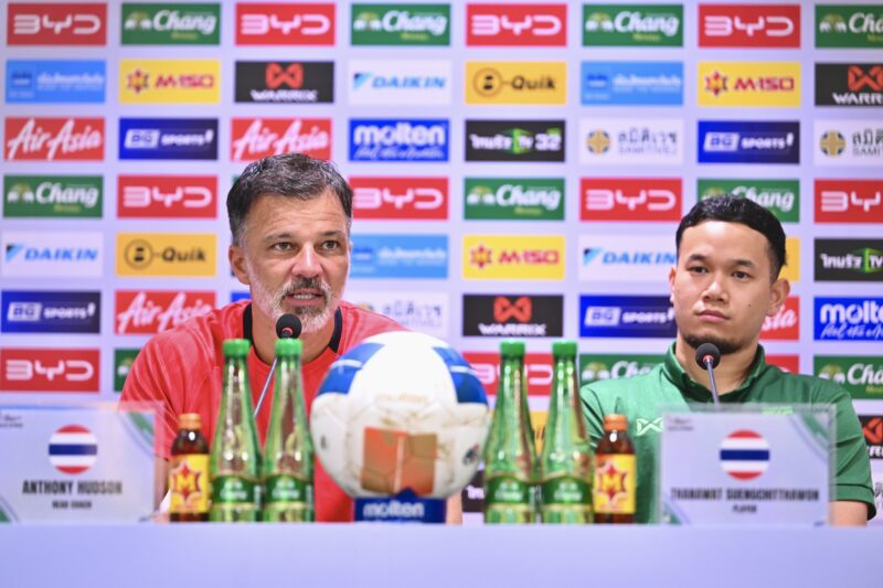 “แอนโธนี ฮัดสัน” และ “ธนวัฒน์ ซึ้งจิตถาวร” แถลงข่าวก่อน ทีมชาติไทย ลงสนามพบกับ เติร์กเมนิสถาน ศึกเอเชียน คัพ รอบคัดเลือก กลุ่มดี นัดที่ 6