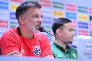 “ผมได้พูดไปแล้ว ถ้าย้อนกลับไป การเตรียมทีมตอนนี้ทำออกมาได้ดีมาก ทุกคน ตัวผมและสตาฟก็ต้องมีความสามารถในการให้ข้อมูล ให้นักกีฬาเข้าใจในรูปแบบของการเตรียมทีมที่จะเจอกับเกมรูปแบบนี้ สิ่งสำคัญที่สุดตอนนี้คือทำให้นักกีฬาทุกคนสดที่สุด พร้อมที่สุดสำหรับเกมวันพรุ่งนี้ สภาพร่างกายตอนนี้ทุกคนน่าจะพร้อมที่สุด ส่วน 11 ตัวจริงในใจ ความสำคัญในเกมแบบนี้ ไม่ใช่แค่ 11 ตัวจริง แต่คือผู้เล่นทุกคนทั้งทีม เพราะ 11 ตัวจริง ทำฟอร์มออกมาได้ดีมากๆแล้ว แต่ส่วนสำคัญที่สุด ที่จะยกระดับเกมดีขึ้น คือผู้เล่นตัวสำรอง ที่เปลี่ยนลงไป และยกระดับให้ดีมากที่สุด แน่นอนว่าตัวผมไม่ได้มั่นใจแค่ผู้เล่น 11 ตัวจริง ที่ตั้งเอาไว้ แต่คือทุกคน รวมถึงคนที่อยู่ในม้านั่งสำรอง ที่ผมหันหลังไป จะเห็นคนที่สามารถช่วยเหลือทีม เปลี่ยนเกมได้ ผมคาดหวังว่าทุกคน ทั้งตัวจริงตัวสำรอง จะแสดงศักยภาพ และโชว์ฟอร์มออกมาสูงที่สุดในเกมแบบนี้”