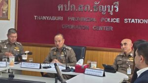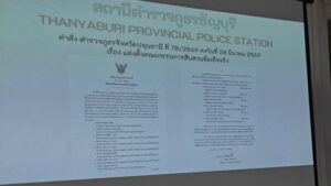 เมื่อเวลา 15.00 น.วันที่ 30 มี.ค.69 ผู้เสียหายที่ถูกแก็งตำรวจกองสืบสวนจังหวัดปทุมธานีอุ้มไปรีดทรัพย์ ได้เดินทางมาที่สภ.ธัญบุรีอีกครั้งพร้อมกับนายเอกภพ เหลืองประเสริฐ ผู้ก่อตั้งเพจสายไหมต้องรอดเพื่อชี้ภาพ8ตำรวจที่ก่อเหตุเข้าค้นบ้านและอุ้มผู้เสียหายกับสามีไปรีดทรัพย์ ตามที่เสนอข่าวไปแล้วนั้น ซึ่งในวันนี้มีทางด้านพล.ต.ท.ไตรรงค์ ผิวพรรณ รอง จเรตำรวจแห่งชาติ พร้อมด้วยพล.ต.ต.กิตติ์ธเนศ ธนนันท์ทวีสิน รอง ผบช.ตชด.ช่วยราชการภ.1 ได้มาประชุมความคืบหน้าโดยมีพล.ต.ต.พีรพล โชติกเสถียร ผบก.จ.ปทุมธานี พร้อมเจ้าหน้าที่ตำรวจในสังกัดจังหวัดปทุมธานีเข้าร่วมประชุมด้วย