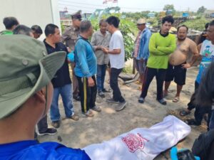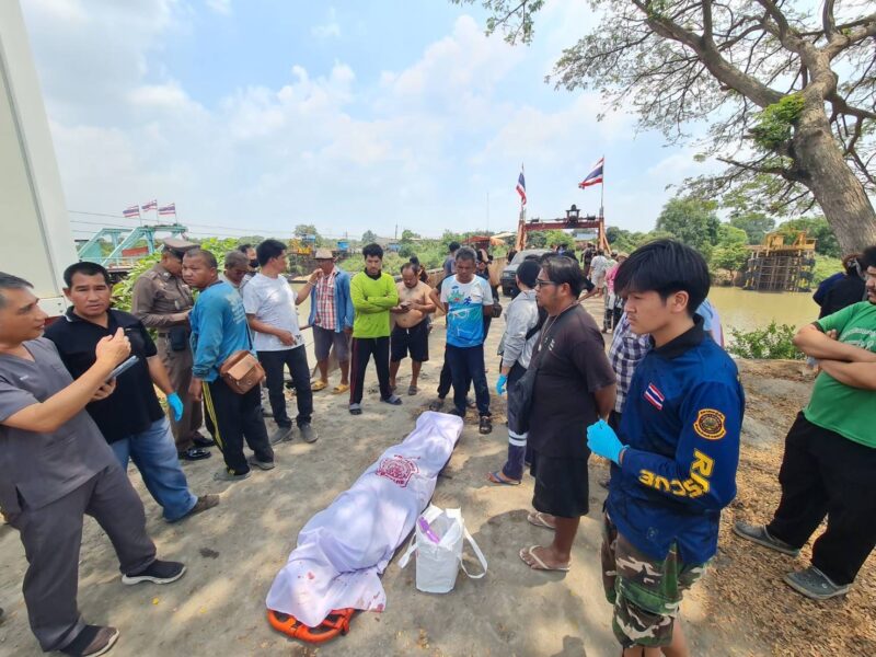 อ่างทอง – สลดผู้ใหญ่บ้านวัย44ปีขึ้นไปปลดสลิงพลาดถูกเหล็กฟาดศีรษะพลัดตกแม่น้ำเจ้าพระยาดับ ขณะขึ้นซ่อมลวดสลิงบนโกรกทรายริมแม่น้ำ