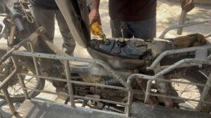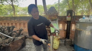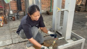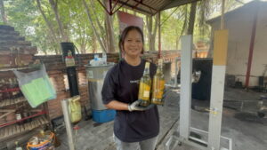 อ่างทอง – ฮือฮาวัดศุขเกษมธรรมมิการามผลิตน้ำมันจากขยะพลาสติกใช้เติมเครื่องตัดหญ้ารถจักรยานยนต์พ่วงข้างใช้งานภายในวัดมานานร่วมปีแล้ว