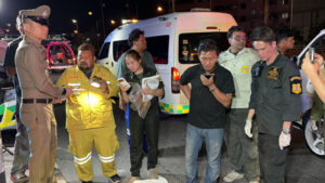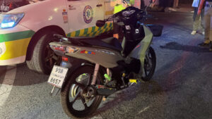 ที่เกิดเหตุพบผู้ได้รับบาดเจ็บเป็นชาย 1 ราย นอนหมดสติ ไม่หายใจ มีบาดแผลรุนแรงบริเวณใบหน้าในลักษณะยุบตัว ทราบชื่อต่อมาคือ นายไคออง อายุ 51 ปี สัญชาติเมียนมา เจ้าหน้าที่กู้ชีพได้เร่งให้การช่วยเหลือโดยการปั๊มหัวใจ (CPR) อย่างต่อเนื่อง แต่ไม่สามารถยื้อชีวิตไว้ได้ ผู้บาดเจ็บเสียชีวิตในที่เกิดเหตุ ตรวจสอบโดยรอบพบรถจักรยานยนต์ยี่ห้อฮอนด้า รุ่นเวฟ สีดำ หมายเลขทะเบียน 9 ขต 8657 กรุงเทพมหานคร จอดล้มอยู่ใกล้จุดเกิดเหตุ สภาพด้านหน้ามีร่องรอยการเฉี่ยวชนพังเสียหายอย่างหนัก