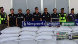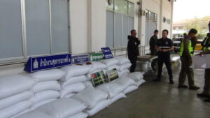มุกดาหาร – ศุลกากรสนธิกำลังตรวจยึดสิบล้อขนข้าวหอมมะลิแดง 15 ตันมูลค่าเกือบล้าน