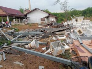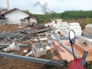 ลมกระโชกแรงถล่มป่าช้าโคกกง ศาลาการเปรียญเสียหาย 2 หลัง บัวเก็บอัฐิใหม่พังยับ