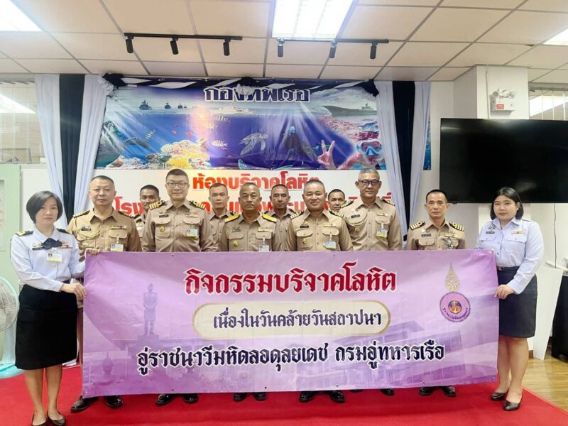 วันที่ 7 เมษายน 2569 พลเรือตรี ทรงศักดิ์ ศุภพันธุ์มณี ผู้อำนวยการอู่ราชนาวีมหิดลอดุลยเดช กรมอู่ทหารเรือ เดินทางมาตรวจเยี่ยมเพื่อเป็นขวัญและกำลังใจแก่ กำลังพลในสังกัด ที่เข้าร่วมกิจกรรมบริจาคโลหิต ณ ห้องบริจาคโลหิต โรงพยาบาลสมเด็จพระนางเจ้าสิริกิติ์ กรมแพทย์ทหารเรือ อ.สัตหีบ จ.ชลบุรี