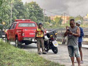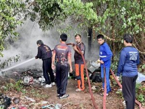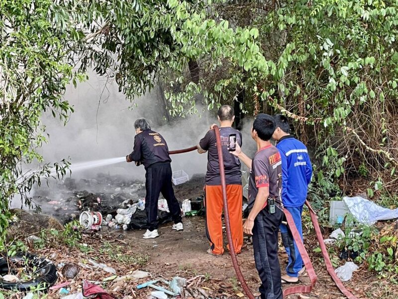 เกิดเหตุเพลิงไหม้ในบ่อขยะที่แอบมาลักลอบเปิดในที่รับตาคน ริมคลองภักดีรำไพใกล้หมู่บ้านมณีจันท์