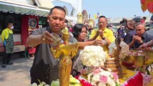 จังหวัดลพบุรี – เริ่มแล้วสงกรานต์เมืองละโว้ประชาชนร่วมทำบุญ สรงน้ำขอพรเจ้าพ่อพระกาฬ