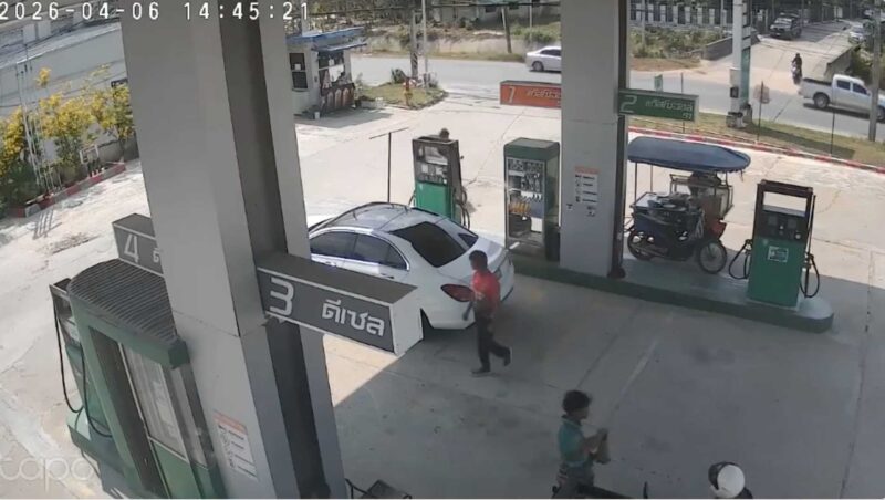 ทั้งนี้ กล้องวงจรปิดของปั๊ม บันทึกภาพช่วงเวลา 14.40 น. รถยนต์หรูคันนี้ เลี้ยวเข้าปั๊มน้ำมัน ก่อนไปจอดที่หน้าตู้จ่ายน้ำมันหมายเลข 1 ซึ่งเป็นตู้ที่จ่ายน้ำมันเบนซิน จากนั้น นายธีรพงศ์ เดินข้ามจากปีกฝั่ง มาให้บริการลูกค้าหญิงคนขับรถคันนี้ และเมื่อเติมเสร็จ จังหวะที่นายธีรพงศ์ กำลังเดินไปที่ตู้แคชเชียร์ เพื่อตรวจสอบยอดเงินจากโทรศัพท์ ลูกค้าหญิงคนดังกล่าว ก็ขับรถออกไปจากปั๊มทันที ในเวลา 14.45 น.