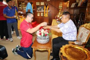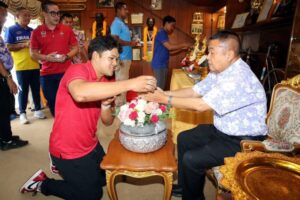 นักกีฬาจักรยานทีมชาติไทยประเภทบีเอ็มเอ็กซ์ และประเภทลู่ ชุดเตรียมทีมเข้าแข่งขันกีฬาเอเชี่ยนเกมส์ ครั้งที่ 20 ที่เมืองนาโกย่า ประเทศญี่ปุ่น ทำพิธีสรงน้ำพระ และรดน้ำดำหัวขอพรจาก พลเอกเดชา เหมกระศรี รองประธานสมาพันธ์จักรยานแห่งเอเชีย (ACC), ประธานสหพันธ์จักรยานแห่งอาเซียน (ACF) และนายกสมาคมกีฬาจักรยานแห่งประเทศไทย ในพระบรมราชูปถัมภ์ เนื่องในเทศกาลสงกรานต์ ปีใหม่ไทย 2569 เพื่อความเป็นสิริมงคล และเป็นขวัญกำลังใจในการฝึกซ้อม ที่ห้องเกียรติภูมิ สมาคมกีฬาจักรยานฯ เวลโลโดรม หัวหมาก เมื่อวันที่ 10 เมษายน 2569