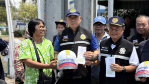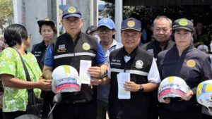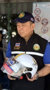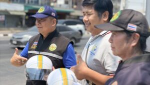 อ่างทอง – คนหัวแข็ง รองผู้ว่าฯ ผนึกกำลัง นายอำเภอวิเศษฯ และ นายก อบต.ไผ่จำศีล ลงพื้นที่แจกหมวกกันน็อคบริเวณแยกประปา รณรงค์ขับขี่ปลอดภัย 100%