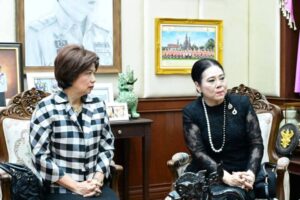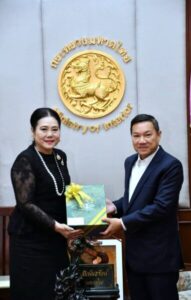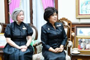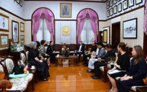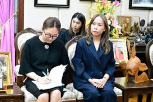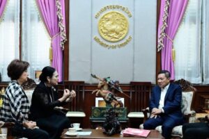 นายอรรษิษฐ์ สัมพันธรัตน์ ปลัดกระทรวงมหาดไทย ให้การต้อนรับ ดร.ลาลีวรรณ กาญจนจารี ประธานสภาสมาคมสตรีแห่งชาติ ในพระบรมราชินูปถัมภ์ พร้อมด้วยคณะผู้บริหารสภาสมาคมฯ ในโอกาสเข้าพบเพื่อหารือแนวทางความร่วมมือกับกระทรวงมหาดไทยสนับสนุนการจัดแสดงจำหน่ายผลิตภัณฑ์สินค้า OTOP ในงาน วันสตรีไทย ประจำปี 2569 โดยมี