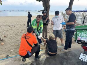 สอบถาม นายโทนี่ อายุ 39 ปี พลเมืองดี ผู้ให้การช่วยเหลือ ทราบว่า ได้รับแจ้งจากแม่ค้าบริเวณชายหาดว่ามีคนลงไปในน้ำเกรงว่าจะเป็นอันตราย จึงรีบขับเจ็ตสกีไปตรวจสอบ จนพบผู้หญิงรายดังกล่าว ลอยคอเกาะอยู่กับเชือกทุ่นลอยน้ำ จึงรีบช่วยเหลือกลับเข้าฝั่ง