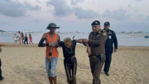 ที่เกิดเหตุพบ น.ส.ศริพร จิตนาม อายุ 36 ปี ลอยคออยู่กลางทะเล พยายามตะเกียกตะกาย เกาะเชือกทุ่น อยู่ในอาการอ่อนแรง ในขณะที่บนชายหาด มีนักท่องเที่ยวและพลเมืองดียืนตะโกนเรียกให้เจ้าตัวกลับขึ้นฝั่ง จนกระทั่งพลเมืองดี เห็นท่าไม่ดีจึงขับเจ็ตสกีเข้าไปใกล้แล้วช่วยเหลือขึ้นเจ็ตสกีพากลับเข้าฝั่งได้อย่างปลอดภัย ซึ่งเจ้าตัวอยู่ในอาการมึนเมาอย่างหนัก พูดจาวกไปวนมาไม่ได้ใจความ ตรวจสอบยังมีบาดแผลที่ข้อมือซ้าย เจ้าหน้าที่กู้ภัยฯ จึงให้การช่วยเหลือปฐมพยาบาลเบื้องต้น