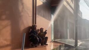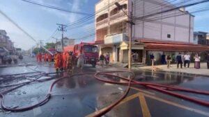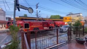 เจ้าหน้าที่ต้องระดมรถดับเพลิงอย่างน้อย 4 คัน กระจายกำลังฉีดน้ำล้อมอาคาร เพื่อควบคุมเพลิงและป้องกันไม่ให้ลุกลามไปยังบ้านเรือนใกล้เคียง ท่ามกลางสถานการณ์ที่เต็มไปด้วยความตึงเครียด