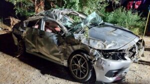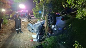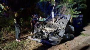 ปทุมธานี – ทางมืดเป็นเหตุเก๋งกลับจากเล่นน้ำสงกรานต์ชนจยย.พลิกคว่ำดับ4เจ็บ4