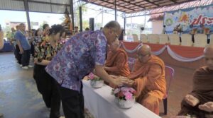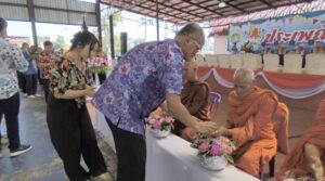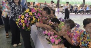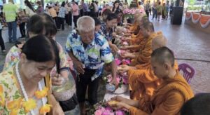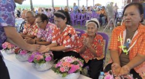สรงน้ำพระพุทธมงคลนครนายก สรงน้ำพระสงฆ์ รดน้ำขอพรผู้สูงอายุ