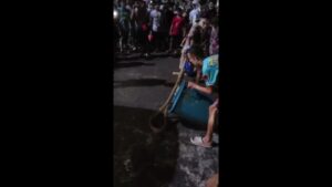 งูเหลือมโผล่กลางถนนเขต 8 ทำวงแตก! หนุ่มชุดลูกเสือฮีโร่ จับยัดถังน้ำเรียกเสียงเฮลั่น