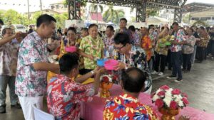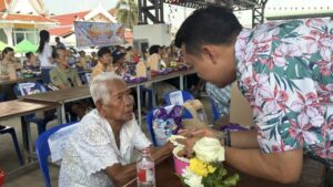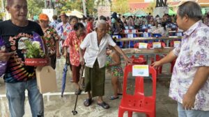 ปทุมธานี – ฮือฮาคุณยาย 5 แผ่นดินวัย 102 ปีโชว์เดินปร๋อร่วมงานสงกรานต์ทต.บ้านกลาง