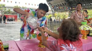 กิจกรรมภายในงานมุ่งเน้นการแสดงความเคารพต่อผู้สูงอายุ ซึ่งสะท้อนถึงวิถีชีวิตอันงดงามของไทย โดยมีการจัดพิธีสรงน้ำพระพุทธรูป และพิธีรดน้ำขอพรผู้สูงอายุที่มีเข้าร่วมงานกว่า 500 ท่าน ทั้งนี้ นายศุภชัย นพขำ สมาชิกสภาผู้แทนราษฎรเขต 2 จังหวัดปทุมธานี พรรคเพื่อไทย ได้ให้การสนับสนุนน้ำดื่มแก่ประชาชนตลอดงาน นอกจากนี้ เทศบาลฯ ยังได้จัดเตรียมอาหารจากร้านค้าชื่อดังกว่า 10 แห่ง เพื่อรับรองผู้สูงอายุและผู้เข้าร่วมงาน พร้อมมอบข้าวแช่และข้าวสารจำนวน 5 กิโลกรัม เป็นของที่ระลึกแก่ผู้สูงอายุทุกท่าน