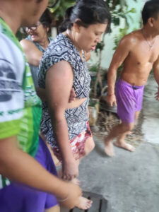 ด้าน นายกฤษณะ มีโต อายุ 31 ปี หลานชายของผู้บาดเจ็บซึ่งพักอยู่อีกบ้านหนึ่งใกล้ๆ กัน ได้ยินเสียงระเบิดดังสนั่นพร้อมกับมีกลิ่นแก๊สโชยมาอย่างรุนแรง จึงรีบวิ่งเข้าไปตรวจสอบที่บ้านหลังนั้นทันที เมื่อไปถึงได้พบกับคุณป้ายืนเกาะเก้าอี้พยุงตัวอยู่ในสภาพบาดเจ็บหนักจากการถูกไฟลวก ร่างกายมีอาการแดงพองไปทั้งตัว ทั้งบริเวณแขน ขา และลำตัว รวมถึงเส้นผมที่มีร่องรอยถูกไฟไหม้ แต่โชคดีที่บริเวณใบหน้าไม่ได้รับอันตราย ซึ่งหลังจากพบเหตุทางครอบครัวนำรถออกเพื่อพาคุณป้าส่งโรงพยาบาลในทันที