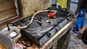 จากการตรวจสอบภายในห้องครัวบ้านหลังดังกล่าว พบ ว่ามีร่อยรอยความเสียหายบ้างส่วน โดยมีฝาด้านบนหล่นลงมา และมีคราบของผงน้ำยาเคมีดับเพลิงที่ชาวบ้านได้มาฉีดระงับเพลิง ส่วน ถังแก๊ส ชาวบ้านปิดวาลล์แล้วนำออกมาหน้าบ้าน ด้าน เตาแก๊ส พบว่าสายแก๊สชำรุดจนขาดออกจากกัน ในกระทะยังพบกุ้งอบวุ้นเส้นที่ยังปรุงไม่เสร็จคาอยู่