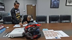 จากการตรวจค้นในเบื้องต้นไม่พบสิ่งผิดกฎหมายเพิ่มเติม แต่เมื่อนำภาพจากกล้องวงจรปิดให้ดู นายส่งศักดิ์จำนนต่อหลักฐานและให้การรับสารภาพว่าเป็นผู้ก่อเหตุจริง เจ้าหน้าที่จึงได้ตรวจยึดรถจักรยานยนต์ พร้อมด้วยหมวกกันน็อกและรองเท้าที่สวมใส่ในวันก่อเหตุ พร้อมแจ้งข้อหา “ลักทรัพย์หรือรับของโจร”
