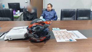 พร้อมกันนี้ เจ้าหน้าที่ได้ตรวจยึดของกลางประกอบด้วย 1. รถจักรยานยนต์ยี่ห้อยามาฮ่า รุ่น TTX สีเหลือง-ดำ หมายเลขทะเบียน 1 กข 5579 สกลนคร จำนวน 1 คัน 2. หมวกกันน็อกเต็มใบสีดำ จำนวน 1 ใบ 3. รองเท้าแตะแบบสวมสีขาว จำนวน 1 คู่ และ 4. ธนบัตรฉบับละ 1,000 บาทปลอม จำนวน 9 ใบ