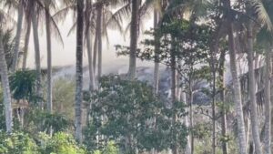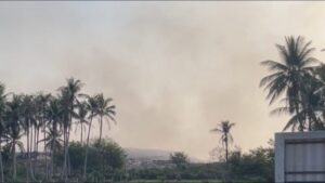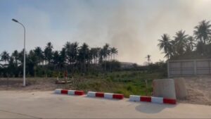 ตอนนี้มันสิ้น สาย ๆ หน่อยเดี๋ยวควันขึ้นแล้ว เป็นกองใหญ่ แล้วก็เป็นกองเล็ก ๆ ด้วย เต็ม! ไฟแดง… เมื่อคืนสองทุ่ม ประมาณสองทุ่มได้ ที่ผ่านมาเนี่ยไฟขึ้น… ที่ควันขึ้นเยอะน่ะ ประมาณ 3 วันแล้ว