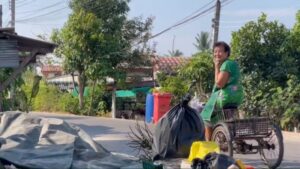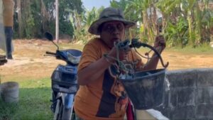 เมื่อคืนผู้ใหญ่บ้านประกาศให้คนอยู่แต่ในบ้าน อย่าออกมานั่งที่สว่าง ๆ ให้อยู่แต่ในบ้าน ให้ลงมาดูหรอก แล้วว่า… จะทำยังไง แต่ว่าเรารู้แล้วว่าเขาทำยากแหละ เพราะมัน… มันเป็นที่ที่สูงขึ้นไปสูงไง มันลำบาก เราเห็นอยู่ว่าเขาทำงานลำบากแหละ แต่ว่าให้เขาเข้ามาช่วย ๆ กันไง”