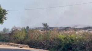 เมื่อคืนที่ผ่านมา ซึ่งเช้านี้บริเวณบ่อขยะพบกลุ่มควันลอยออกมาจากบ่อขยะหลายจุดทำให้กลุ่มควันลอยไปตามกระแสลม ทำให้ท้องฟ้ามีลักษณะขมุกขมัวบดบังแสงแดดและบางจุดยังมีไฟลุกไหม้ขึ้นมา พร้อมมีรถดับเพลิงของเทศบาลใกล้เคียงเข้าสนับสนุนและสลับสับเปลี่ยนกำลังเจ้าหน้าที่เพื่อเฝ้าระวังเหตุไฟไหม้บ่อขยะ ตลอด 24 ชม.